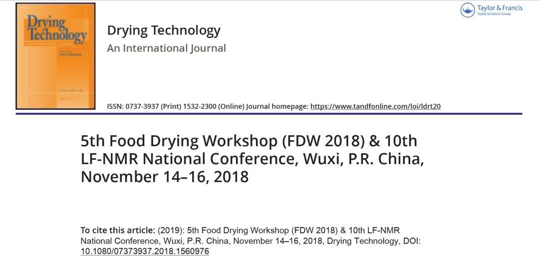 2)Qing Sun, Min Zhang*, 5th Food Drying Workshop (FDW 2018) &10th LF-NMR National Conference,Drying Technology, accepted,2019(2017 IF2.219)