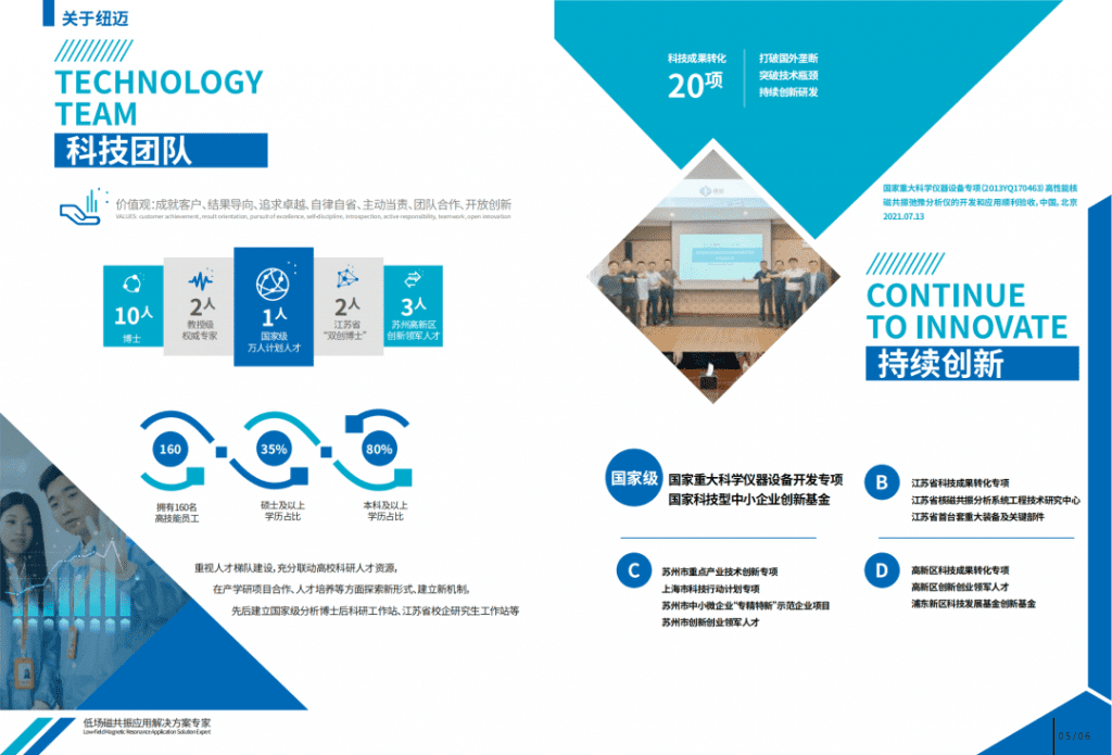 公司成立至今,已通過(guò)ISO 9001:2015質(zhì)量管理體系認(rèn)證、CE認(rèn)證,建立了國(guó)家博士后工作站、江蘇省博士后工作站、研究生工作站和區(qū)研究生工作站,同時(shí)已被認(rèn)定為江蘇省核磁共振分析系統(tǒng)工程技術(shù)研究中心、蘇州市低場(chǎng)核磁共振儀器工程技術(shù)研究中心、蘇州市納米空隙核磁共振檢測(cè)工程技術(shù)研究中心、蘇州市企業(yè)技術(shù)中心、江蘇民營(yíng)科技企業(yè)、江蘇省科技型中小企業(yè)等。?