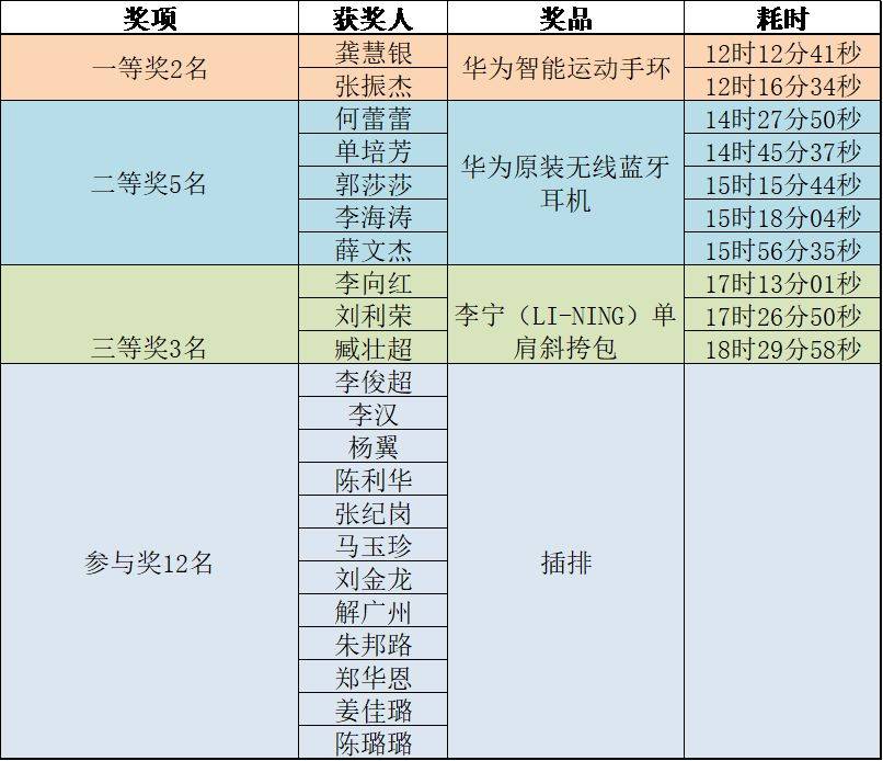 經(jīng)過為期150天的堅持,共有111名同事參加活動,其中22名完成本次活動目標(biāo)。為大家的堅持及毅力點贊,我們也為每一位完成目標(biāo)賽的同事準(zhǔn)備了一份禮品。領(lǐng)取名單如下: