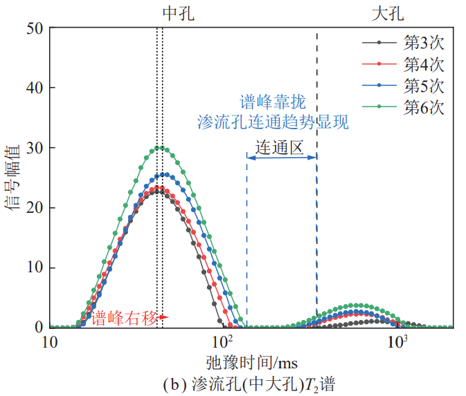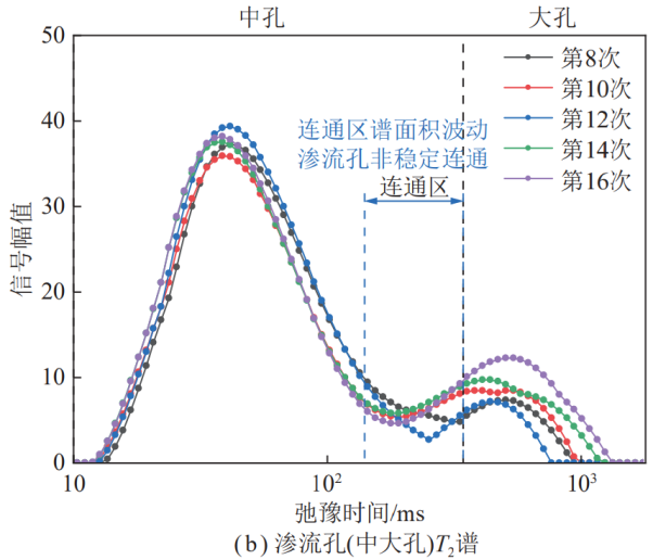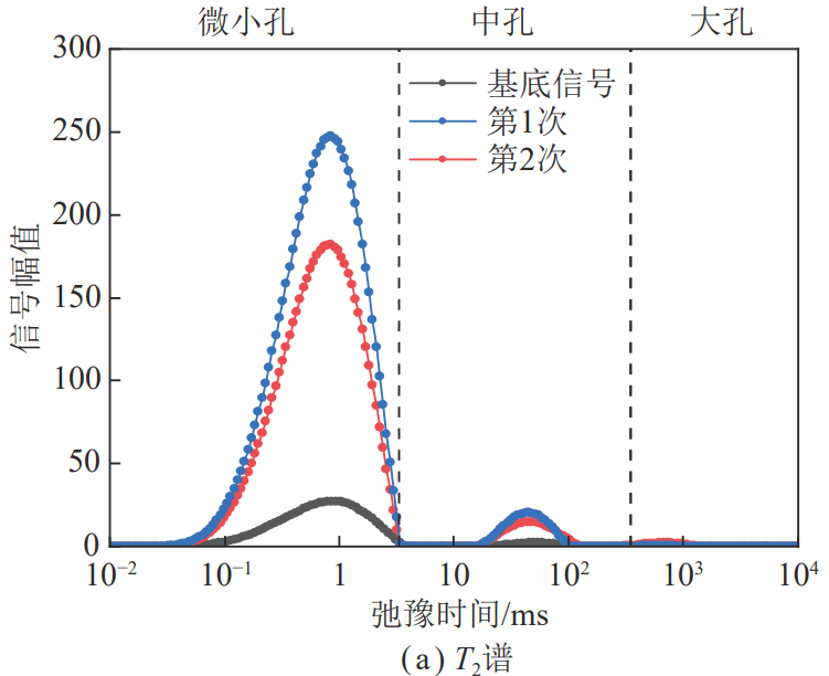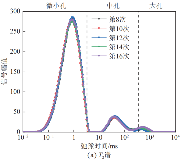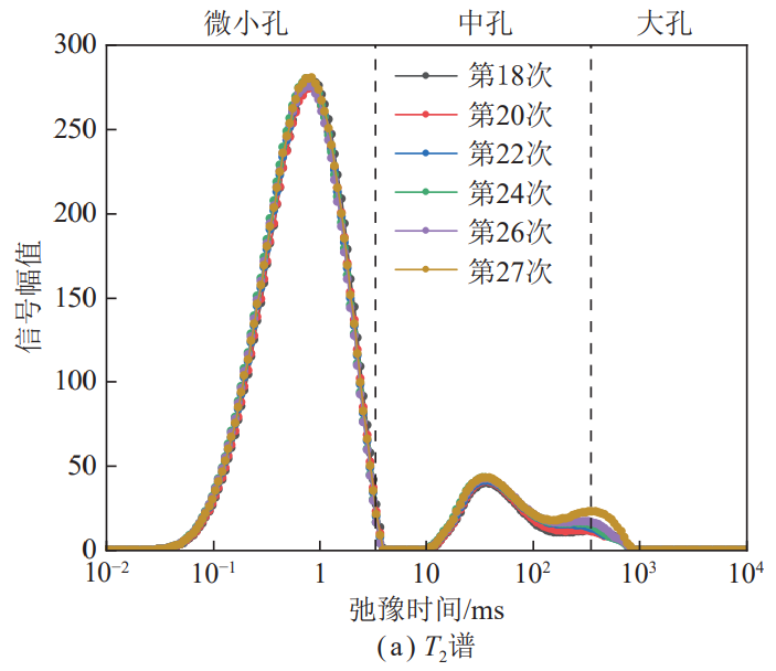 圖五 吸附孔激增階段煤樣T2譜演化曲線