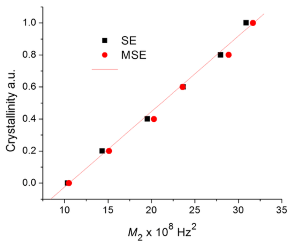 對(duì)于結(jié)晶性評(píng)價(jià)中的結(jié)晶度測(cè)量,良好的相關(guān)性結(jié)果清楚地表明,使用MSE序列的方法更省時(shí)省力。同時(shí),這樣跨領(lǐng)域研究的方法,也會(huì)因?yàn)榈蛨?chǎng)核磁技術(shù)的不斷普及而越來(lái)越受歡迎。