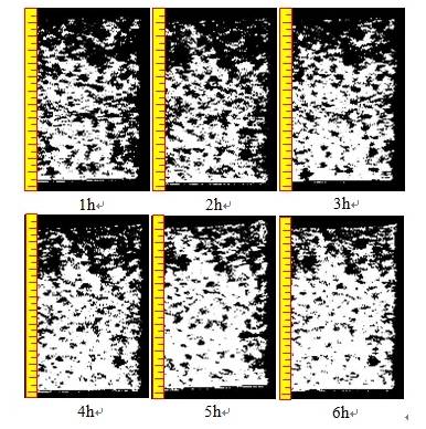 借助于低場(chǎng)核磁共振檢測(cè)和成像技術(shù),得到了H2O和(NH4)2SO4兩種溶液浸礦過(guò)程的孔隙結(jié)構(gòu)T2圖譜,反演重構(gòu)了孔隙結(jié)構(gòu)分布圖像。