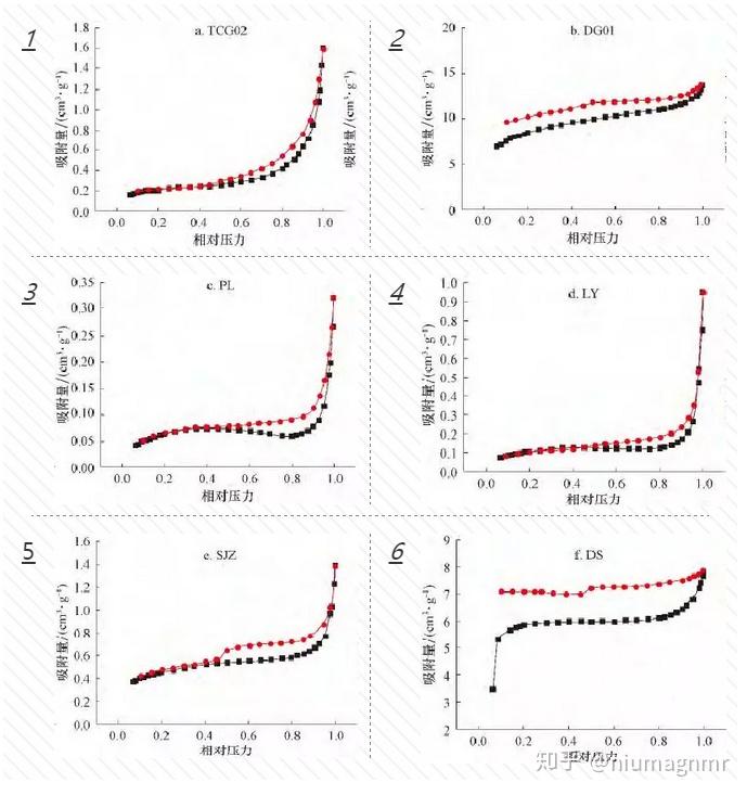 圖4:6組煤樣的低溫氮吸附/脫附曲線