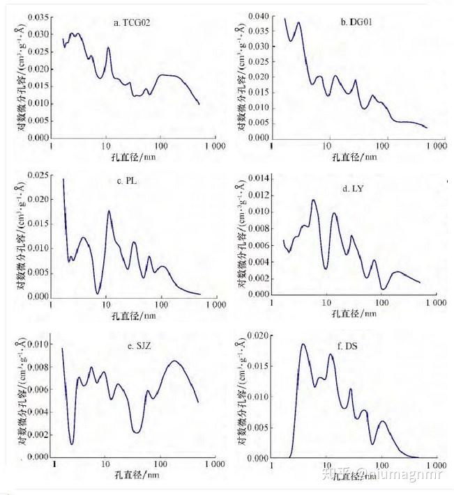 圖5:6組煤樣的NMPC與BJH孔徑分布對比