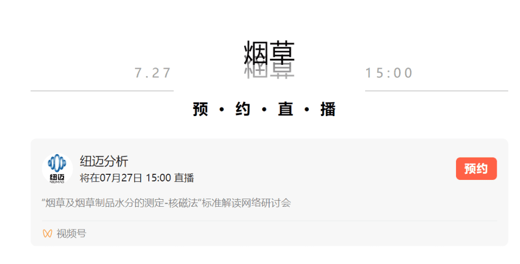 本次網(wǎng)絡(luò)研討會(huì)采用視頻號(hào)直播的方式,歡迎大家關(guān)注微信公眾號(hào):紐邁分析,點(diǎn)擊預(yù)約按鈕,即可預(yù)約直播,開(kāi)播前會(huì)有消息提醒,不錯(cuò)過(guò)直播。