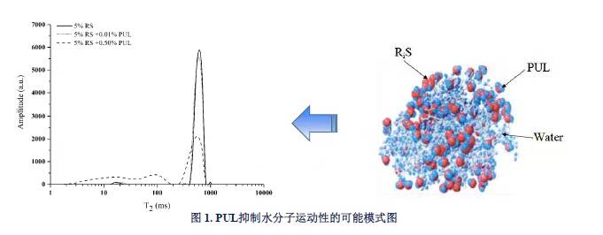 同時(shí),PUL還可能與滲漏出來(lái)的直鏈淀粉相互作用,形成特殊的淀粉分子-膠體分子凝膠網(wǎng)絡(luò)結(jié)構(gòu),并具有束縛水分子自由運(yùn)動(dòng)的性質(zhì)(圖1)。