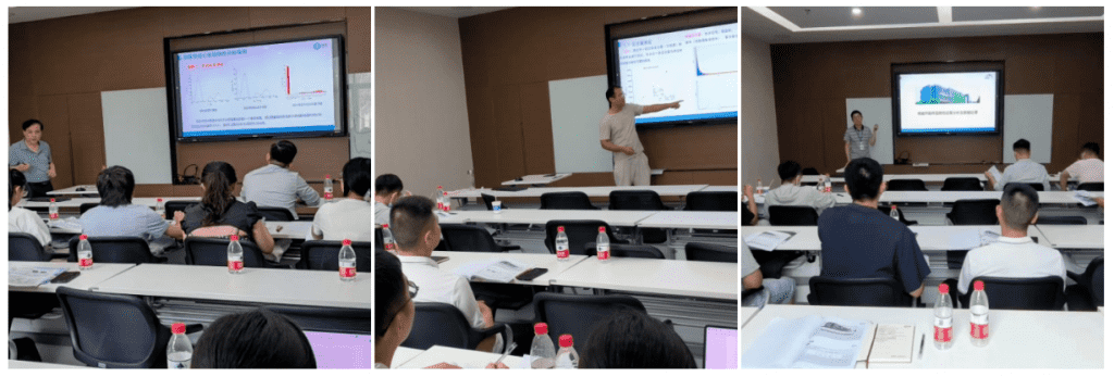 隨著課程不斷深入,由紐邁分析博士后工作站站長、英國愛丁堡大學(xué)應(yīng)用地球物理博士的燕軍教授;畢業(yè)于上海大學(xué)石油工程的博士后華老師;畢業(yè)于蘭州理工大學(xué)的博士后應(yīng)博士,碩士畢業(yè)于大連工業(yè)大學(xué)食品科學(xué)與工程專業(yè)的林老師等針對石油能源應(yīng)用、地質(zhì)地礦應(yīng)用、食品農(nóng)業(yè)及材料應(yīng)用和核磁測試數(shù)據(jù)的處理技術(shù)等,結(jié)合不同領(lǐng)域的案例分析進(jìn)行了授課和講解。