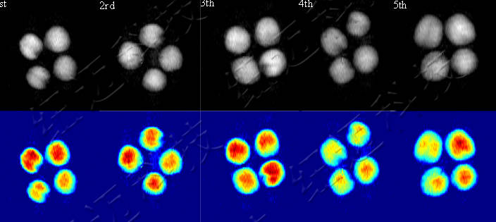 結(jié)合T2圖譜與MRI成像,核磁共振可以直觀的看到種子中的油水分布。