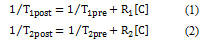 組織中T1、T2值與造影劑濃度的關(guān)系如下: