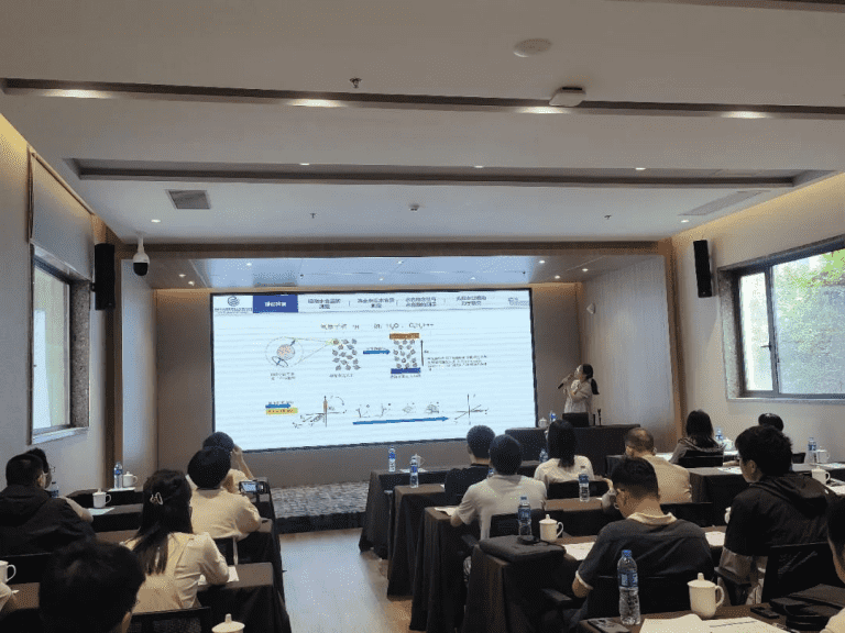 紐邁分析產(chǎn)品總監(jiān)高楊文向在場師生介紹了紐邁的發(fā)展歷程、產(chǎn)品應(yīng)用領(lǐng)域、低場磁共振技術(shù)原理等