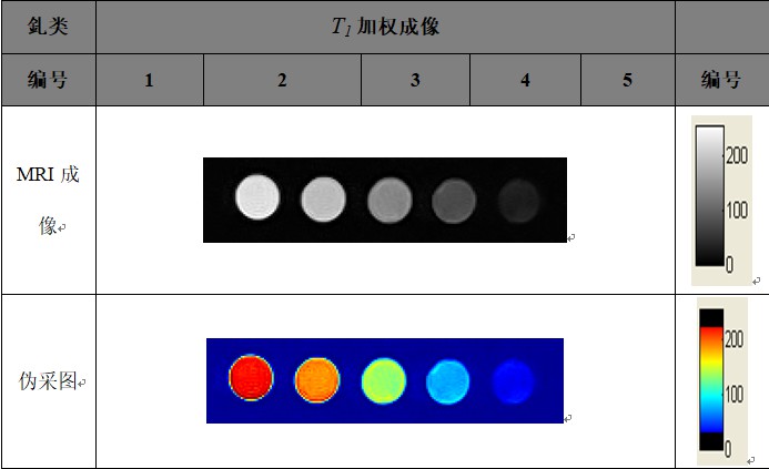 T1加權(quán)成像實(shí)驗(yàn):采用多層自旋回波成像序列對造影劑進(jìn)行T1加權(quán)像