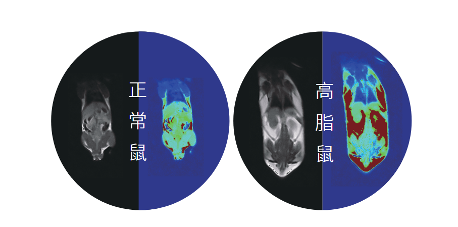 目前,低場核磁共振技術(shù),已被廣泛應(yīng)用于小動(dòng)物(大、小鼠)實(shí)驗(yàn)?zāi)P椭?,用于監(jiān)測體內(nèi)脂肪分布及沉積情況。這不僅有助于揭示人類肥胖代謝性疾病的病因,還為肥胖治療藥物的評價(jià)提供了重要依據(jù)。通過低場核磁共振技術(shù)結(jié)果表征,科研工作者能夠直觀地觀察到小鼠體內(nèi)脂肪的變化,從而更深入地理解肥胖癥的發(fā)病機(jī)制。