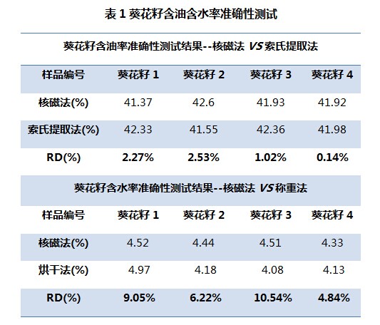 作為一項(xiàng)無(wú)損檢測(cè)技術(shù),基于弛豫時(shí)間檢測(cè)的低場(chǎng)核磁共振在油料種子含油含水率檢測(cè)領(lǐng)域,有完善的研究體系和成熟的成果,在農(nóng)業(yè)食品業(yè)界含油率檢測(cè)占有一席之地。目前已有國(guó)際標(biāo)準(zhǔn)ISO10565: 1995《油籽——油含量水含量同時(shí)測(cè)定——脈沖式核磁共振測(cè)定法》和國(guó)家標(biāo)準(zhǔn)GB/T 15690:1995《油籽含油量核磁共振測(cè)定法》。適用于含水量10%以下的油籽,如油菜籽,大豆,亞麻籽,葵花籽,芝麻,棉籽等。含水量高于10%的檢測(cè)對(duì)象,需要在含油率測(cè)試前作烘干處理,使之含水率降到要求范圍。