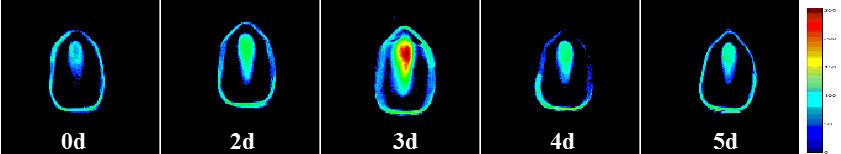 圖4.3 藍莓4℃儲存過程的質子密度加權成像