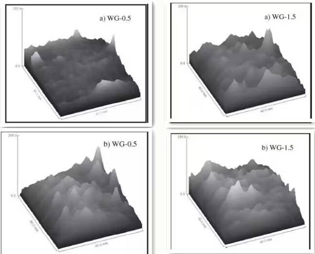從上圖中可以看出,碳化前后堿激發(fā)礦渣水泥砂漿的孔隙的T2圖譜曲線發(fā)生明顯的改變,碳化后均使得樣品內(nèi)部的小孔隙數(shù)量減少,中孔和大孔有一定程度的增加。AAS和PC樣品在較大尺度上的孔徑分布基本相同。每種基質(zhì)中孔隙分布的跨度是由于反應(yīng)產(chǎn)物密度的差異造成的。