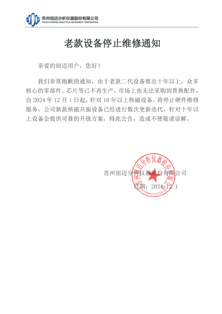 • 老款設(shè)備停止維修通知