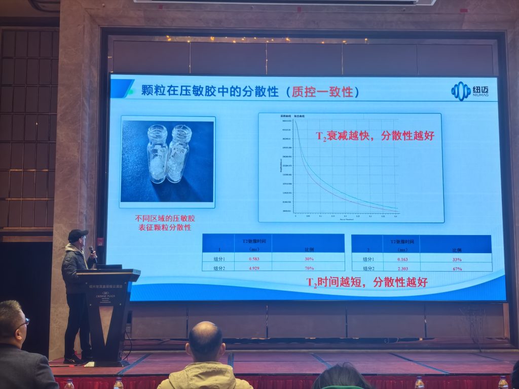 在為期兩天的會議中,蘇州紐邁的展臺吸引了與會者的駐足交流。通過現(xiàn)場講解與案例分享,紐邁向行業(yè)同仁展示了低場核磁共振技術(shù)在材料研發(fā)與質(zhì)量控制(QC)中的獨特價值,其“無損、快速、精準(zhǔn)”的特點,為解決膠粘劑研發(fā)中的諸多痛點提供了全新的分析思路。