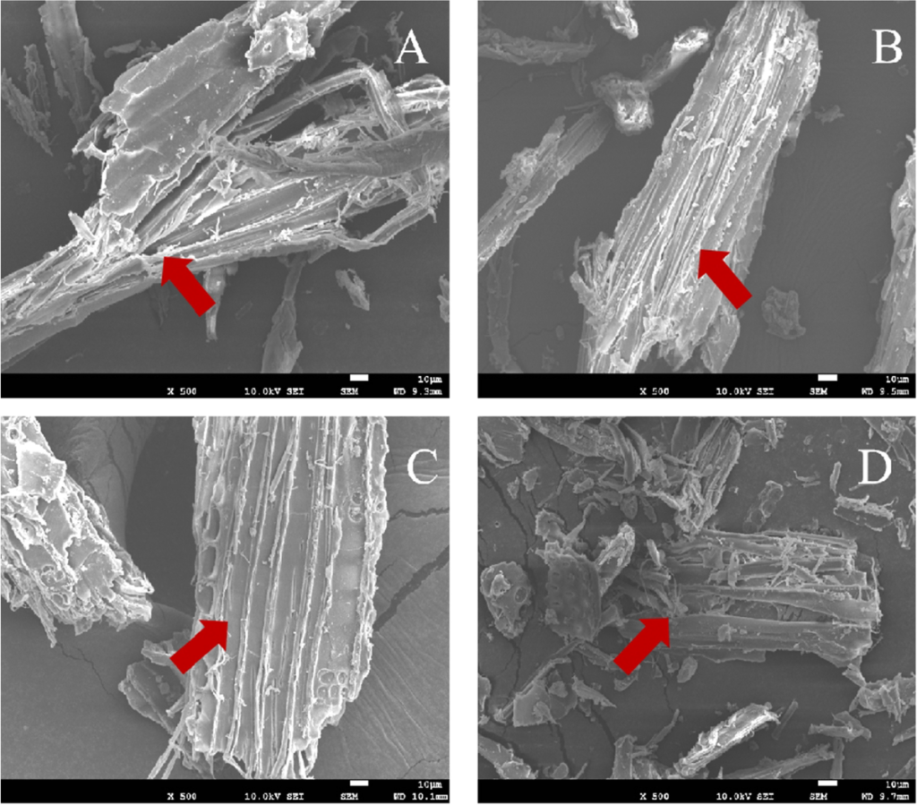 A23?的增加反映了熱水預處理對木材宏觀結構的粉碎程度,顆粒粒徑減小,暴露出更多的外表面積。