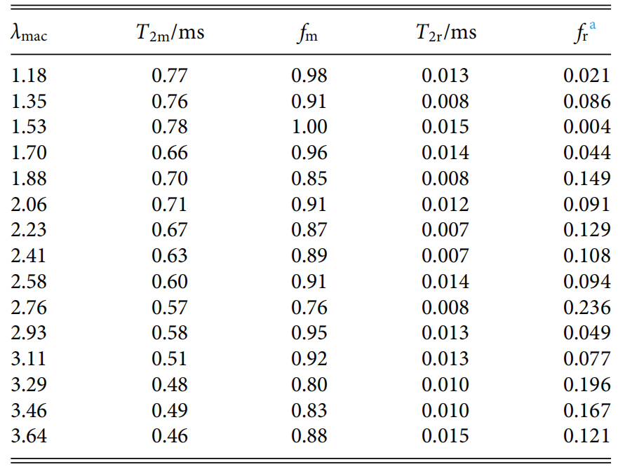 表1:NRCB30移動(dòng)鏈和剛性鏈的弛豫時(shí)間及含量