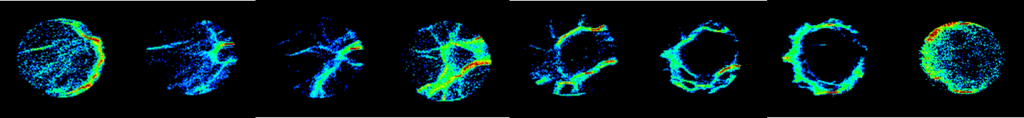 圖一三個樣品峰值強度分別為49.5、47.2和45MPa,最大應變分別為3.59%、3.7%和3.47%。核磁成像表征了樣品在加載過程中含水量的空間分布,暖色程度越高水含量越高。