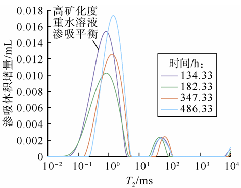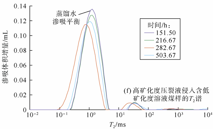 圖2 高礦化度壓裂液侵入含低礦化度溶液煤樣弛豫譜
