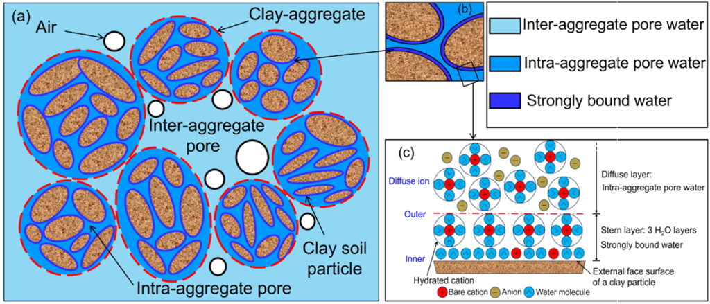 團(tuán)聚體內(nèi)孔隙水:填充在黏土顆粒聚集而成的“團(tuán)聚體”內(nèi)部孔隙中;