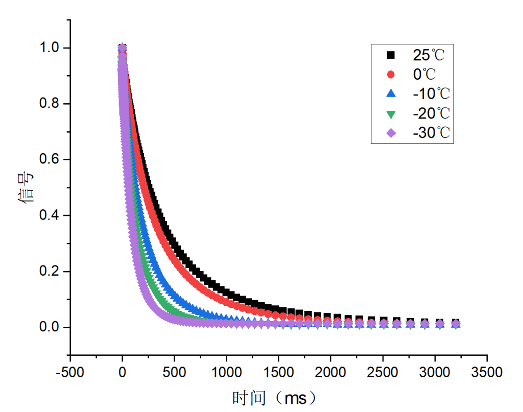 目前只能用一些常規(guī)的力學(xué)方法來表征水凝膠抗凍能力,該方法操作較為繁瑣且對材料具有破壞性,使用蘇州紐邁分析儀器股份有限公司生產(chǎn)的低場核磁變溫分析儀VTMR20-010V-I可以對水凝膠的抗凍性能做出很好的表征,該方法通過測試水凝膠中不同水的狀態(tài)去表征水凝膠的抗凍能力,該測試方法原位無損,且方便快捷。