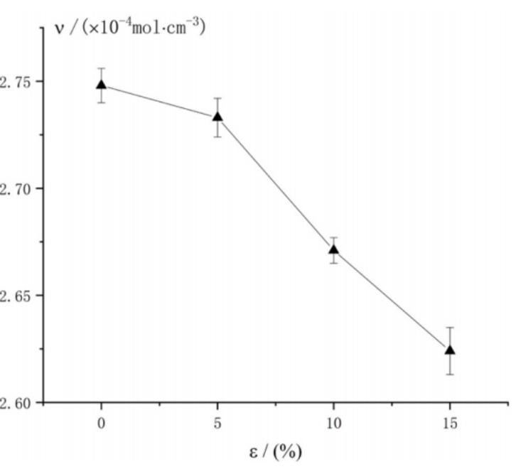 圖一:0%,5%,10%,15%應(yīng)變水平下的交聯(lián)密度值