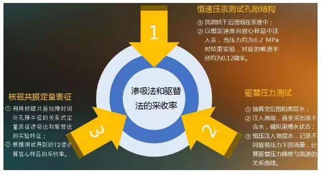 今天剖析的這篇文獻(xiàn)通過NMR(核磁共振)與壓汞測(cè)試手段,分析了滲吸與驅(qū)替兩種狀態(tài)下的采收率變化。樣品采自延長(zhǎng)油田的長(zhǎng)8儲(chǔ)層,是屬于典型的致密油藏儲(chǔ)層。具體的實(shí)驗(yàn)方法如下圖所示。