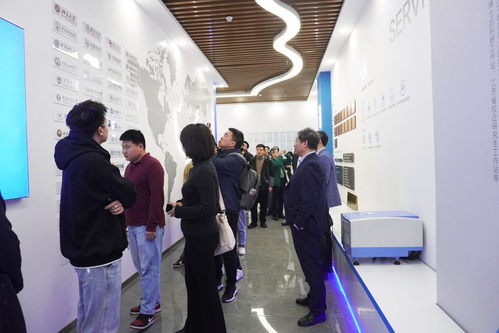 紐邁分析高層領導——董事長楊培強、總經(jīng)理李向紅、產(chǎn)品總監(jiān)高楊文、產(chǎn)品經(jīng)理丁皓等,攜手團隊成員,以滿腔熱忱迎接了與會嘉賓。在會議正式開始之前,產(chǎn)品經(jīng)理丁皓帶領與會師生參觀了紐邁分析公司的展廳,詳細介紹了紐邁分析二十一載的發(fā)展軌跡及其在產(chǎn)學研合作中的創(chuàng)新歷程,讓各位專家學者對紐邁分析的扎實的技術沉淀和一步步走來的歷史積淀有了深入的了解。并且,專家學者實地參觀了紐邁分析的生產(chǎn)現(xiàn)場和設備展示,針對儀器性能、測試技巧和分析手段進行了專業(yè)的技術交流討論,現(xiàn)場的專注氛圍令人印象深刻。