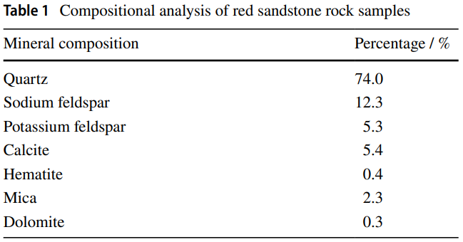 樣品采集:采集紅砂巖樣品,經(jīng)風(fēng)干、粉碎至粒徑1-2 mm,制備成標(biāo)準(zhǔn)尺寸的圓柱體(直徑50 mm,高50 mm),用于力學(xué)測(cè)試。