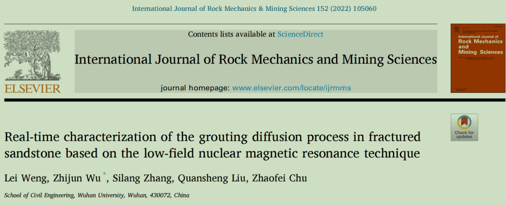本期為大家解讀并推薦的文章,是2022年發(fā)表在中科院大類一區(qū)期刊《International Journal of Rock Mechanics and Mining Sciences》上,來自武漢大學(xué)吳志軍教授和翁磊副研究員團隊,主要內(nèi)容為裂隙砂巖滲透注漿過程的實時核磁共振表征。