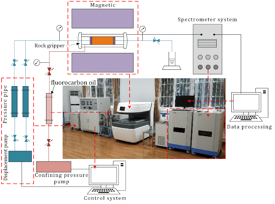 本篇論文中所用的MacroMR12-150H-1型低場核磁共振巖石滲流過程實時在線分析與成像系統(tǒng),搭配了高溫高壓驅(qū)替系統(tǒng),主要用于流體滲流過程、氣-液兩相驅(qū)替過程研究,本篇文章主要使用了一下功能: