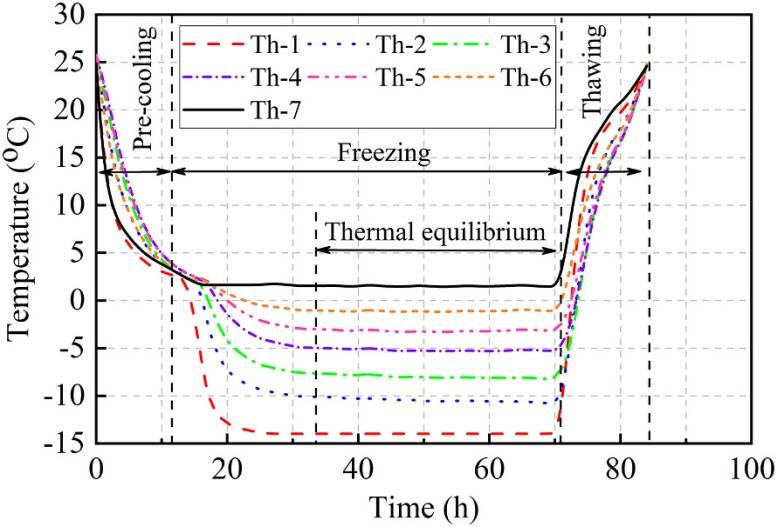 3.凍結(jié)過程持續(xù)了60小時(shí),以達(dá)到熱平衡,使得每個(gè)監(jiān)測(cè)點(diǎn)的溫度穩(wěn)定下來。