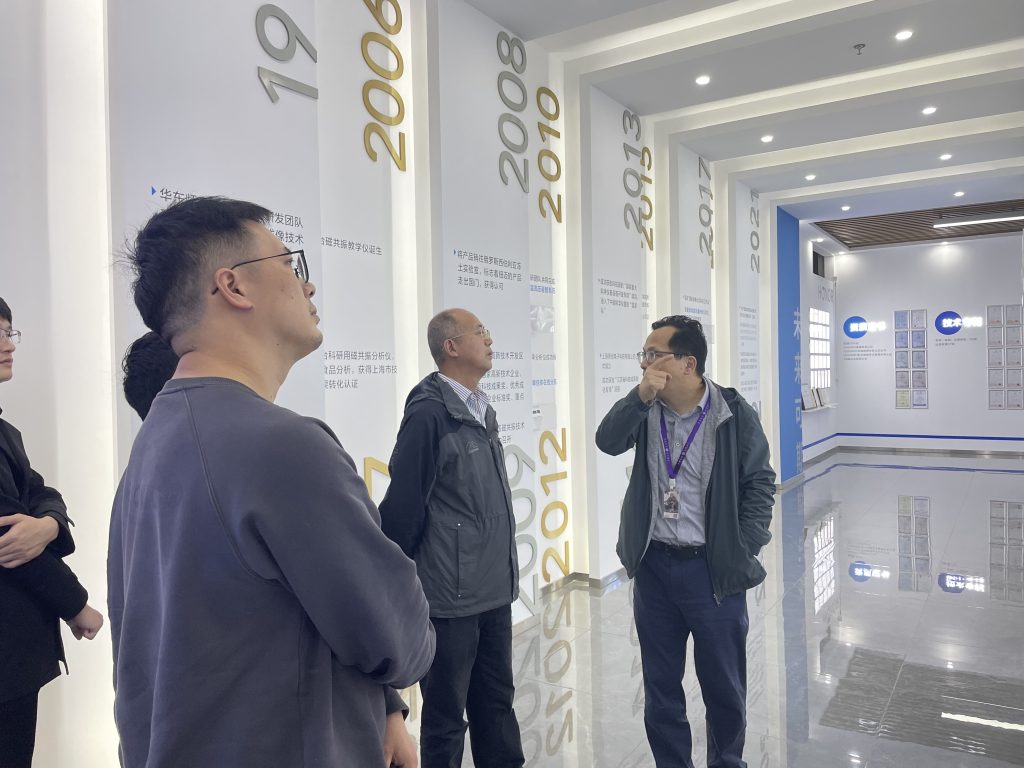 在楊培強(qiáng)董事長的引導(dǎo)下,專家團(tuán)隊(duì)參觀了紐邁分析的展廳,楊董事長詳細(xì)闡述了公司二十多年的發(fā)展歷程,展示了與科研客戶合作取得的豐碩成果,并介紹了公司在低場(chǎng)核磁共振技術(shù)領(lǐng)域的創(chuàng)新突破及市場(chǎng)拓展成就。盧毓周高級(jí)專家一行對(duì)紐邁分析在高端核磁共振分析儀器研發(fā)和生產(chǎn)方面的能力表示了高度認(rèn)可,并就技術(shù)細(xì)節(jié)與紐邁分析的團(tuán)隊(duì)進(jìn)行了深入的座談交流。
